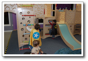いつも行く室内遊び場を貸し切り、フードやドリンクを持ち寄って、子どもたちはヒーローのマントやプリンセスの衣装を着て遊び、大人たちはその間、ゆっくりとおしゃべりを楽しみます。