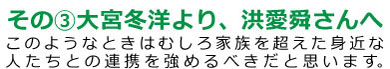 「遠い親戚より近くの他人」という諺もあります。このようなときはときはむしろ家族を超えた身近な人たちとの連携を強めるべきだと思います。