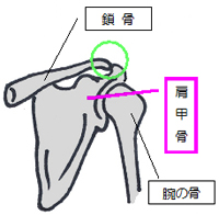 肩甲骨は、鎖骨によってをあるべき場所に繋ぎ止められているのです(○:肩鎖関節)。