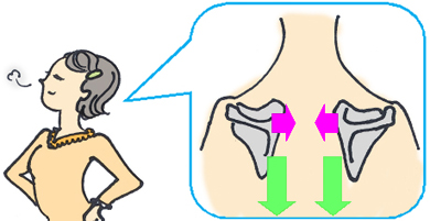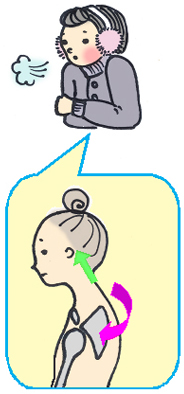 寒い季節に肩が凝りやすいのはこのためです。普段以上に首の筋肉が緊張してしまう上に、ギュッと力の入った胸の筋肉でリンパの通り道をふさいでしまうのです。 |