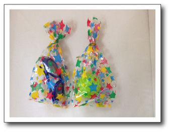 パーティーの最後には「グディバック」という、小さなプレゼントを送ります。お菓子や、えんぴつ、消しゴムなど、子どもたちの喜びそうなものを、少しだけ入れておきます。
