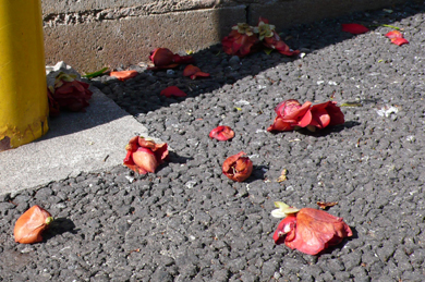 光も木も、店も、散る花も、 シンプルに情報を発信するかのような、