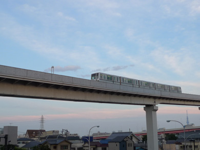 荒川から扇大橋をこえると、荒川区から足立区へ。 歩く街から車で動く街へと、がらりと変化する。 一見生活感がなく思えるが、田舎育ちの私にとっては、 逆に馴染みを覚えるものでもある。 モノレールという乗り物はなぜ非日常的なのだろう。 実際、晴れた日や夕暮れ時に、 舎人ライナーから見渡す荒川の景色は 日常から離れた美しさを見せてくれる。