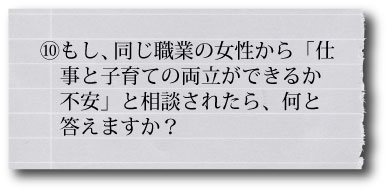 子どもがいると、独身の頃みたいには働けないし、悩みや葛藤もたくさんあると思いますが、仕事と育児で、全く違う種類の体験を得られるから、がんばり甲斐があると思います!