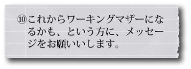 仕事を続けようか迷っている人は、辞めるのはいつでもできると思うので、働くママ仲間としては、続けてもらいたいですね。