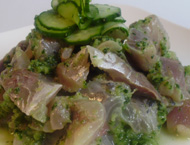 の工程を塩昆布で代用。アジを取り出したら、塩昆布がついたまますりおろしきゅうりと酢で和えれば、より簡単にできます。