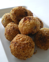 で1cm角に切ったクリームチーズを包み直径3cmのボール状に丸める。