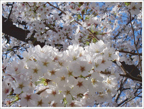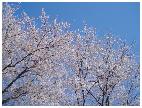 そう思って見上げた春の空は どこまでも青く青く、 想像していたよりもずっと「白い」桜の花たちが 風に乗ってさわさわと揺れているのでした。