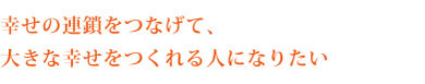 人に喜んでもらうために自分が何かをして、その人もまた他の人を喜ばせるために何かをして、って、そういう風に連鎖がつながってゆけば、幸せになる人がすごく増えますよね。それは自分だけが幸せであるより、きっと何倍も何十倍も、幸せなことだと思うんです。そのために今の一歩一歩を、大切に歩いていきたいですね。たとえ転んだとしても、また起き上がって」